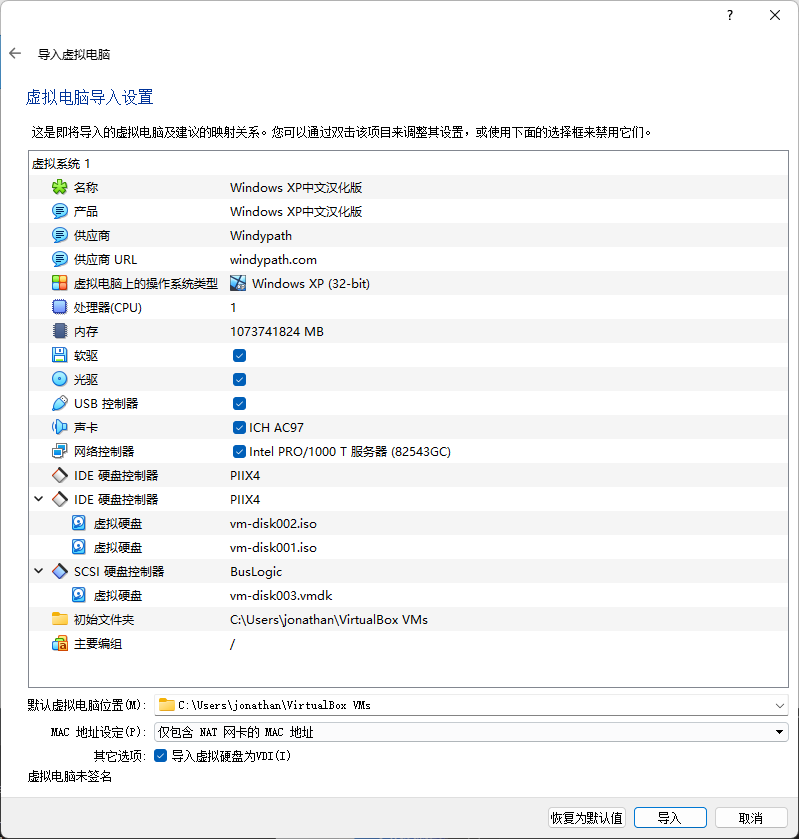 但你不一定能启动起来,你需要在导入OVA文件后,在OVA文件的目录下,执行以下命令: